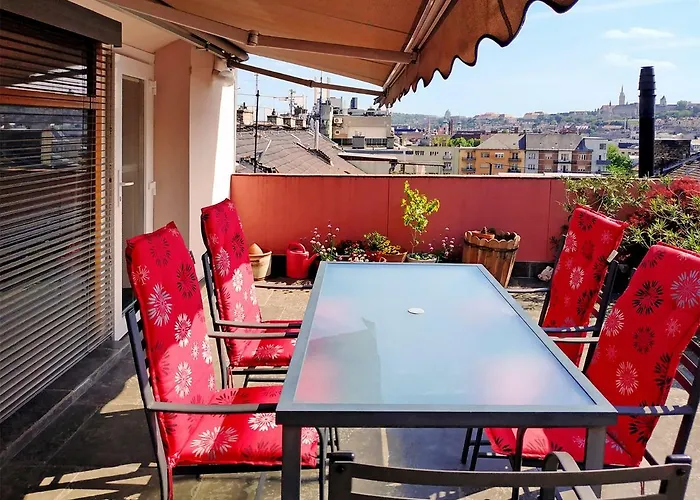 El Margaret Apartment For 5 People With Panorama Terrace Budapest, ofrece a los huéspedes la oportunidad de disfrutar de las puestas de sol a orillas de Millenáris-tó, a unos 25 minutos a pie. Los huéspedes que viajen en coche tienen a su disposición un aparcamiento público cerca.